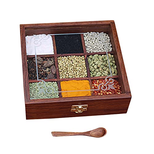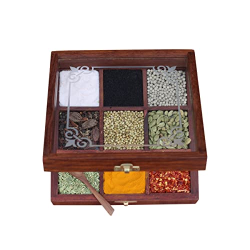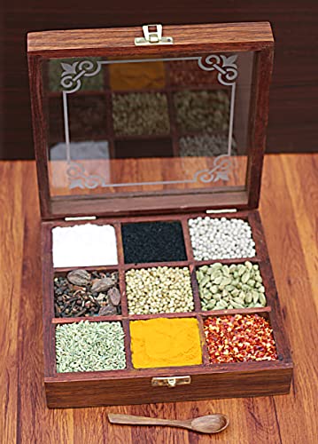 It could be use to keep dry fruits nick knack jewellery etc. It is a beautiful master piece to storage different spices which also known to different names such as masala box spice box wooden spice box spice box set for kitchen etc.