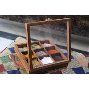 Wooden Spice Box Masala Dani, Spice...