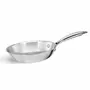 The Alda Vitale Tri Ply Stainless steel fry pan is a must have cookware in a modern kitchen. It is perfect for making eggs tampering and heating up a small quantity of dry food. It comes with strong riveted cool touch long handle angled perfectly for ease of use. The flared sides help food to cook quickly and let moisture escape for the browning of food without steaming. The see through lid with handle is an added advantage. (Remove last line in case of without lid fry pan)