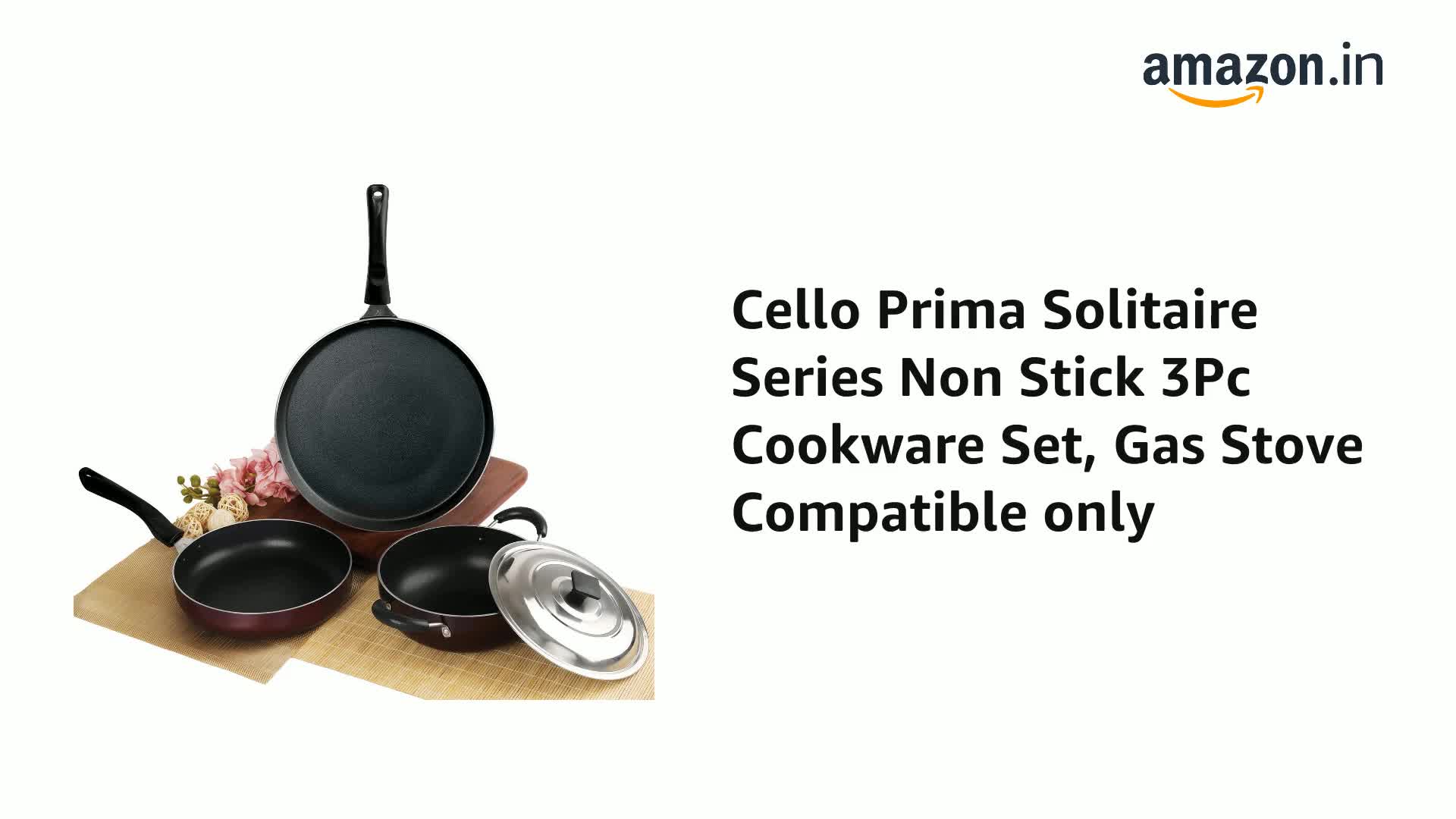 Cello Prima Solitaire Series Non Stick 3Pc Cookware Set, Gas Stove Compatible only