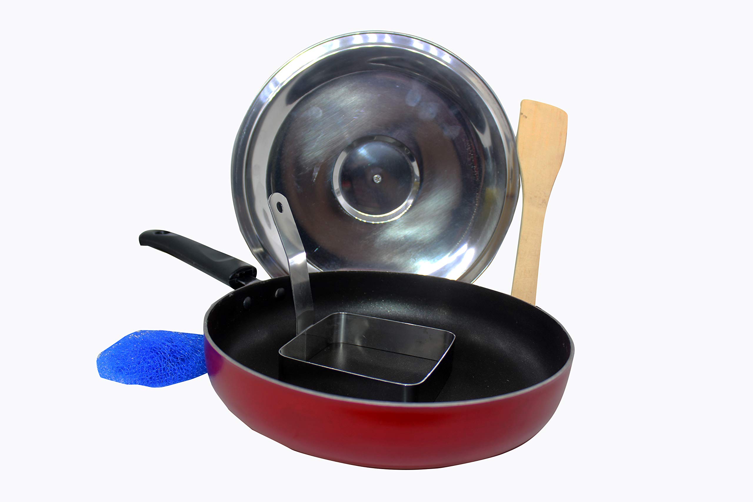 Dynore Non Stick Fry Pan with lid and Stainless Steel Square Egg/Pancake Ring with Handle