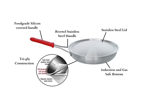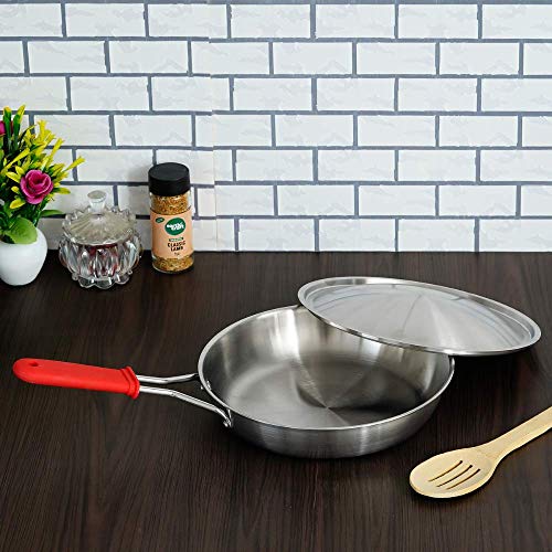 Femora Tri-ply Frying Pan 24 cm Capacity 1.8 L with Silicone Handle with Steel Lid - Healthy Cooking (Induction Safe Stain Resistant Zero Coating)