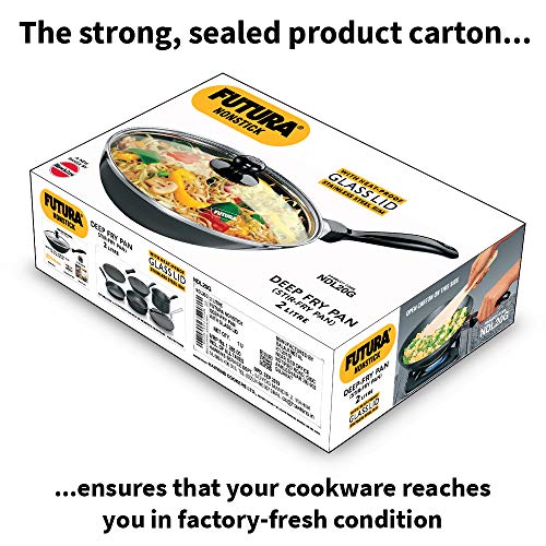 Futura Nonstick Deep-Fry Pans are distinguished by elegant comfortable rosewood handles fixed on sturdy stainless steel brackets which are permanently riveted to the pans. The long handles are carefully designed to provide greater comfort and safety particularly when handling heavy loads or hot oil. The cooking surface is made of PFOA-free with a unique patented process by which high quality nonstick coating (made in Germany) is locked firmly into the tough Hard Anodised surface underneath. Therefore the nonstick if used properly would last longer than the ordinary nonstick. The pans have curved sides suitable for deep-frying and stir-frying. They are offered with a Flat Bottom for greater stability on gas and for use on cooktops with a flat surface such as induction electric ceramic and halogen. The toughened thick Glass Lid is made of heat-resistant glass with a strong stainless steel rim and stay-cool knob. It stops splatter of hot foods.
