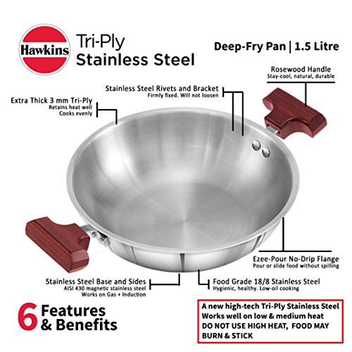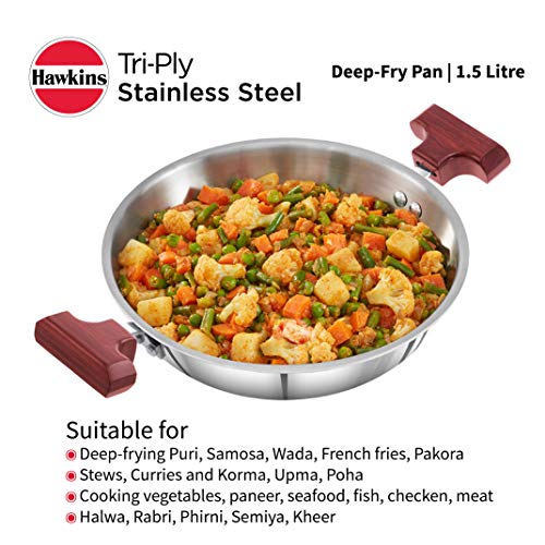 Hawkins Stainless Steel Tri-ply Deep-Fry Pans are ideal for sautéing and stir-frying using minimal quantities of oil. They can also be used for cooking gravies curries and sauces.