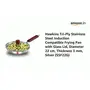 Hawkins Tri-ply Stainless Steel Frying Pan is designed to give you all the advantages of cooking in stainless steel while minimizing the disadvantages of sticking and burning that are normally associated with ordinary stainless steel. The cooking surface (inner surface) is made from 18/8 food-grade (AISI 304) stainless steel which is extremely hygienic most durable does not react with most foods and does not pit or corrode. The heavy gauge aluminium core spreads heat well for even cooking with no hot spots and retains heat for quick cooking. It is sandwiched between two layers of stainless steel and does not come in contact with food on the cooking surface. The base (outer surface) is made of AISI 430 grade magnetic stainless steel. Hence this cookware can be used on all domestic gas induction electric ceramic and halogen cooktops. The well curved sides of the frying Pan helps easy stirring and mixing of foods without spilling. Suitable for eggs tikki poora pancakes fish-fry and stir-frying. The toughened thick Glass Lid is made of heat-resistant glass with a strong stainless steel rim and stay-cool knob. It stops splatter of hot foods.