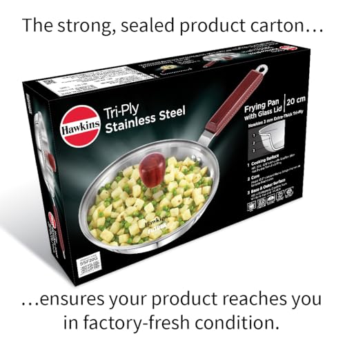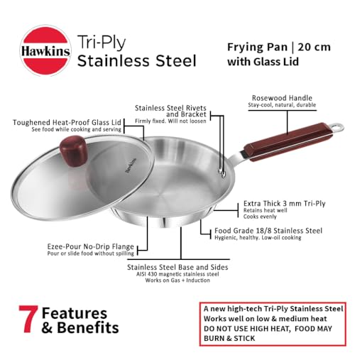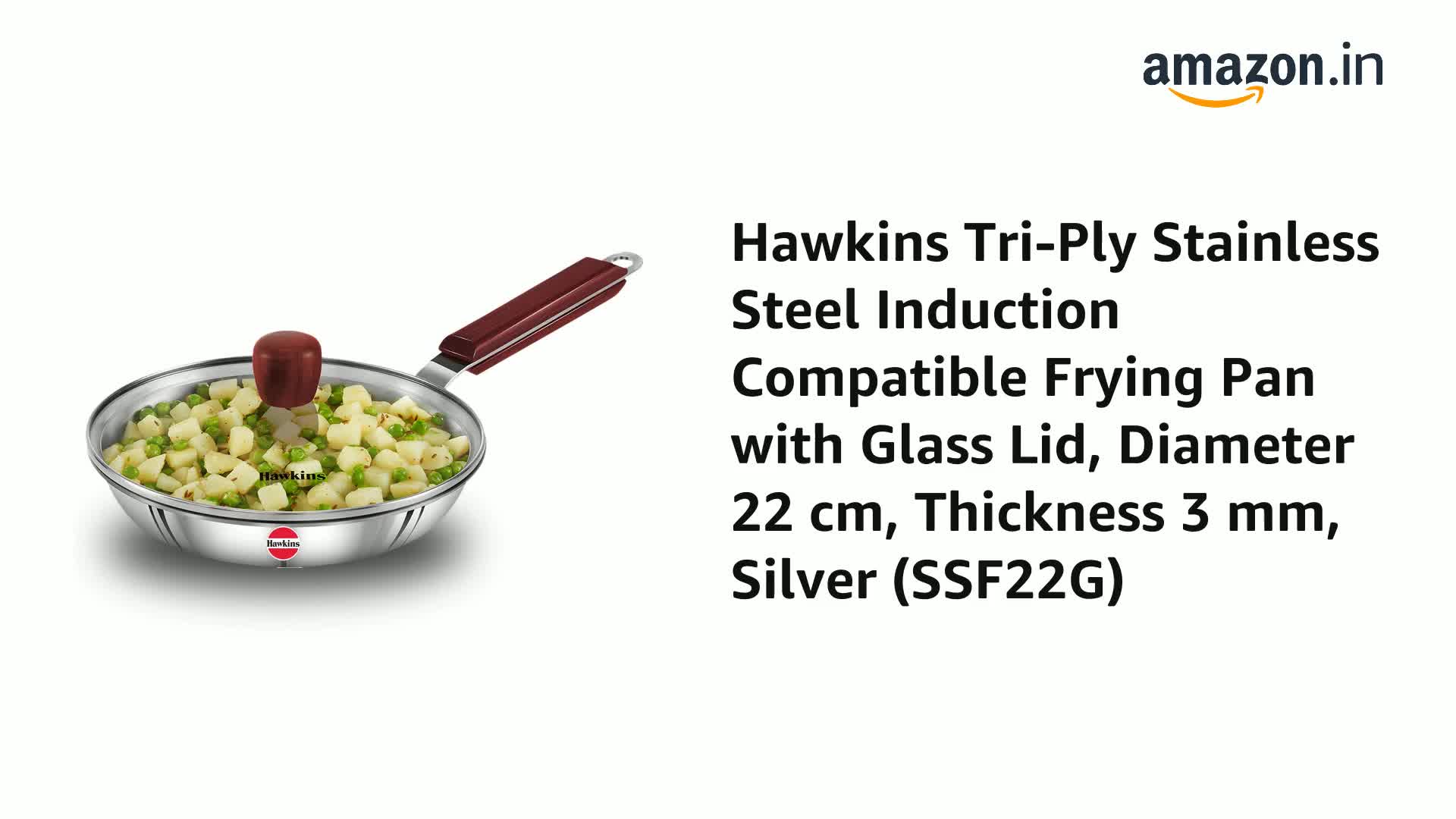 Hawkins Stainless Steel Tri-ply Frying Pans are ideal for cooking foods such as fried eggs omelets pancakes and uttapam with minimal use of oil or butter.