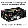 The Cookware Set is built from hand-picked Tri-Ply Stainless Steel induction compatible models that are carefully matched to cater to most of your cooking needs. It consists of TAVA (22 cm DIA; 3.5 mm THICK) FRYING PAN (22 cm DIA; 3 mm THICK) and DEEP-FRY PAN / KADHAI (1.5 LITRE; 3 mm THICK) with glass lid. Each item included in the Set is accompanied by its own Instruction Manual/Cookbook and its own Guarantee Card. Spatula and scrubber are also included. Each Set is securely packed in an attractive box ideal for gifting. There are attractive savings on the purchase of the Set when compared with buying individual units separately.