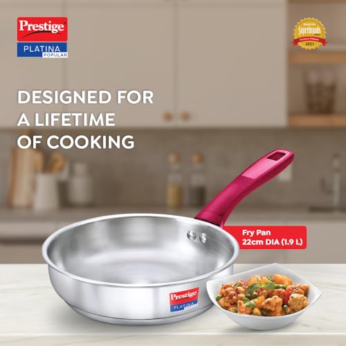 1 x Prestige Platina Popular Stainless Steel Gas and Induction Compatible Fry Pan 220 mm