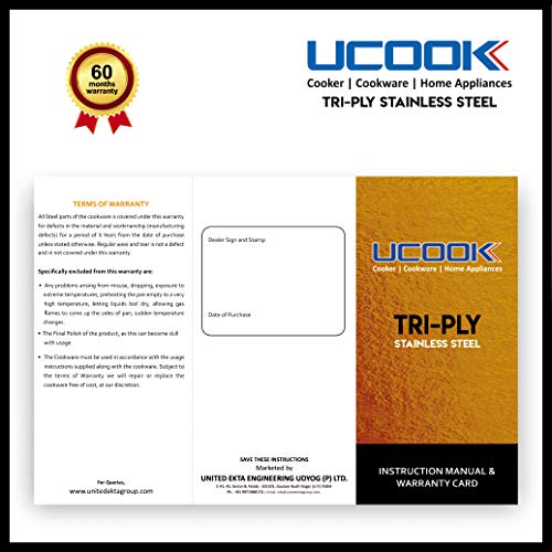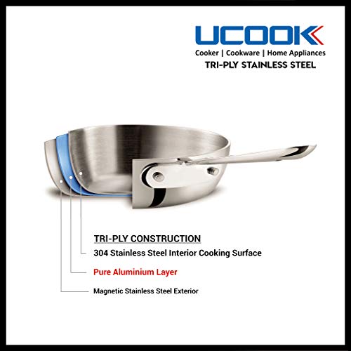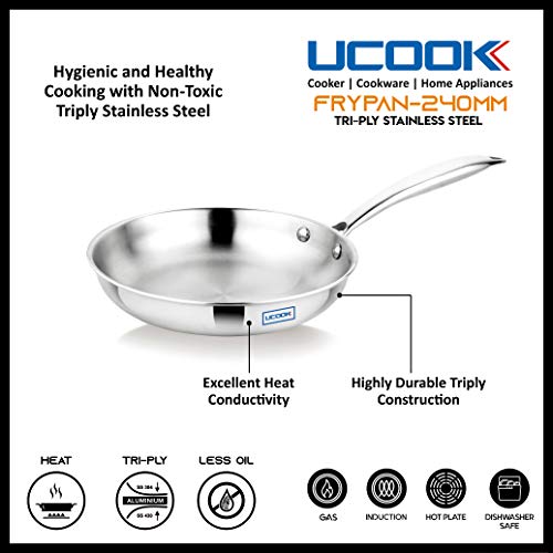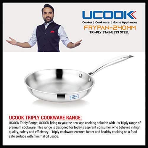 UCOOK brings to you the new age cooking solution with its Triply Frypan 240 mm. This frypan is designed for todays aspirant consumer who believes in safety and efficiency. Triply frypan ensures faster and healthy cooking on a food safe surface. The inner most layer is of SS304 food safe stainless steel for healthy cooking middle layer of aluminium which ensures even heat distribution and the outer most layer is of SS430 stainless steel for the induction compatibility.