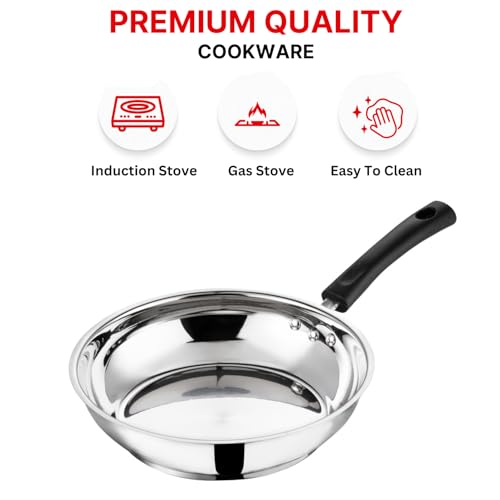 Stainless Steel Fry Pan Suitable for Cooking on Gas and Induction. It also has Cool Touch Handles.