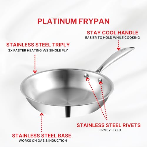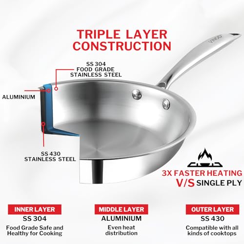 Vinod Platinum Triply Stainless Steel Fry Pan - 24 cm (Induction Friendly)