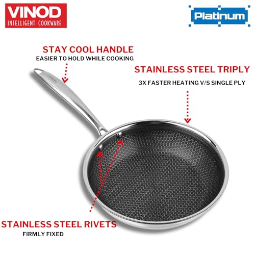 Triple layered construction: Combining appealing aesthetics with clever functional components the Vinod triple layered platinum kadai is specially designed for reliable and hygienic everyday cooking in home and industrial kitchens.