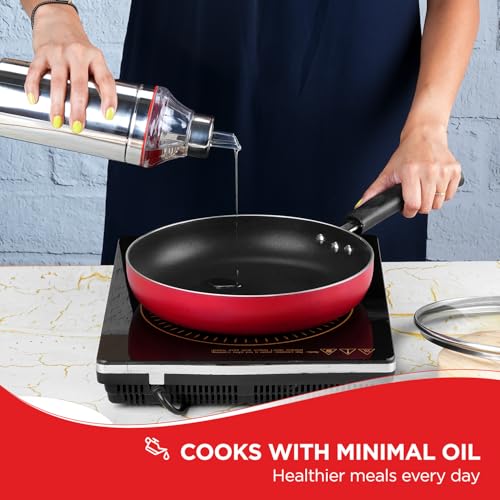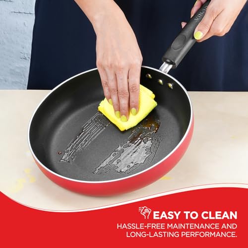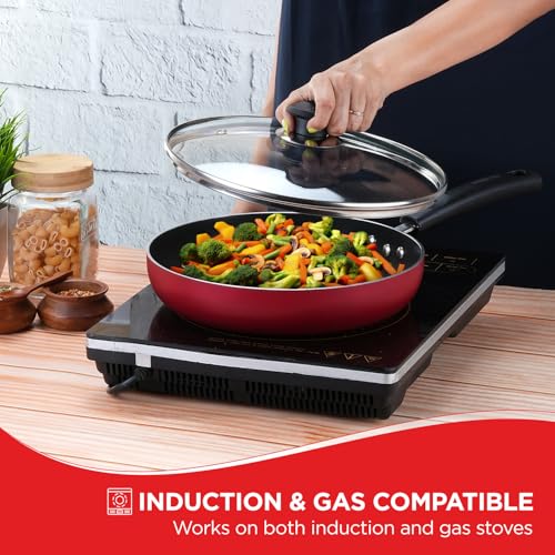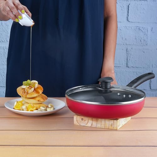 Vinod Zest Inducto Aluminium Non Stick Deep Frypan with Glass Lid - 24 cm | 3 mm Thick | Premium Non-Stick Coating | Metal Spoon Friendly | Induction & Gas Stove Compatible | 1 Year Warranty