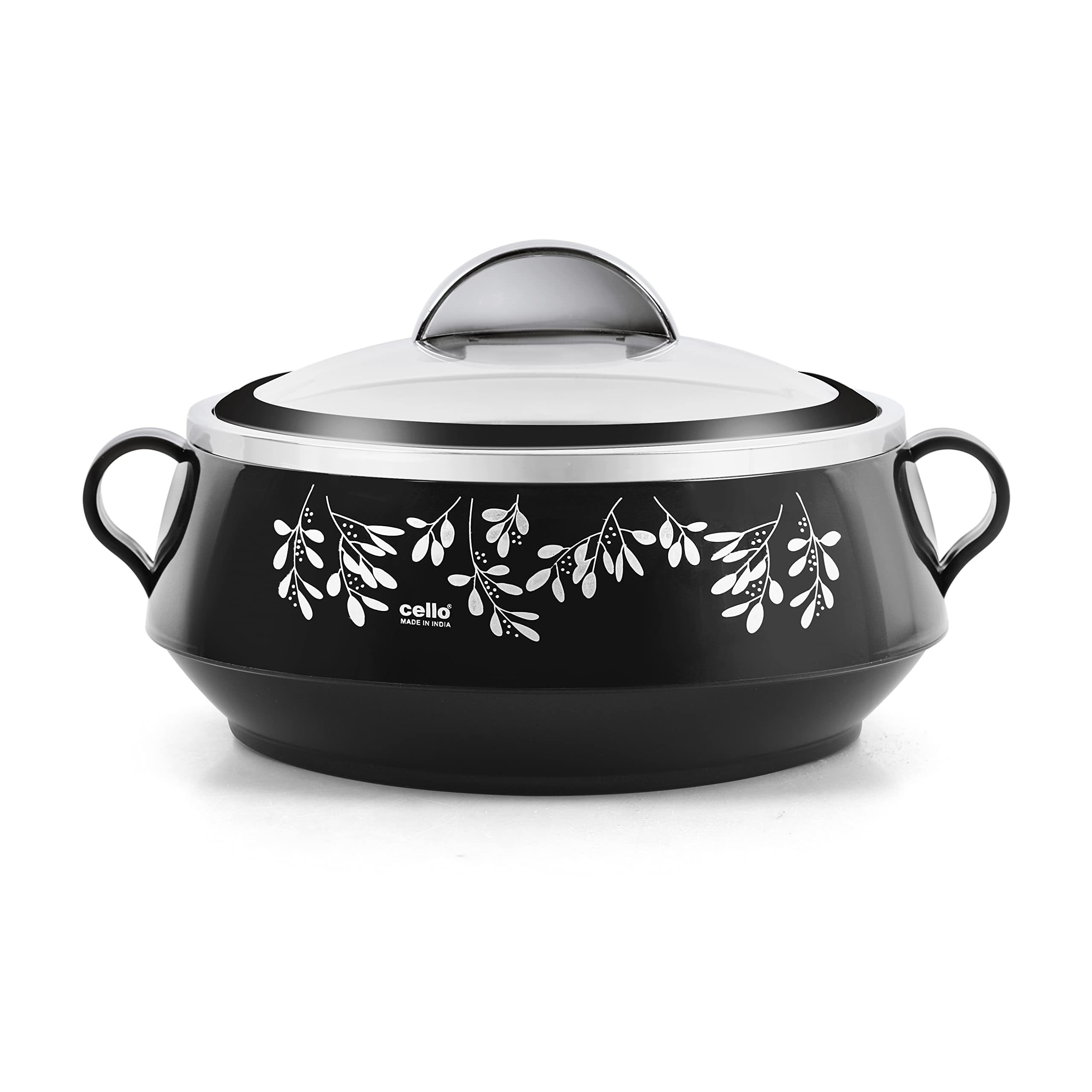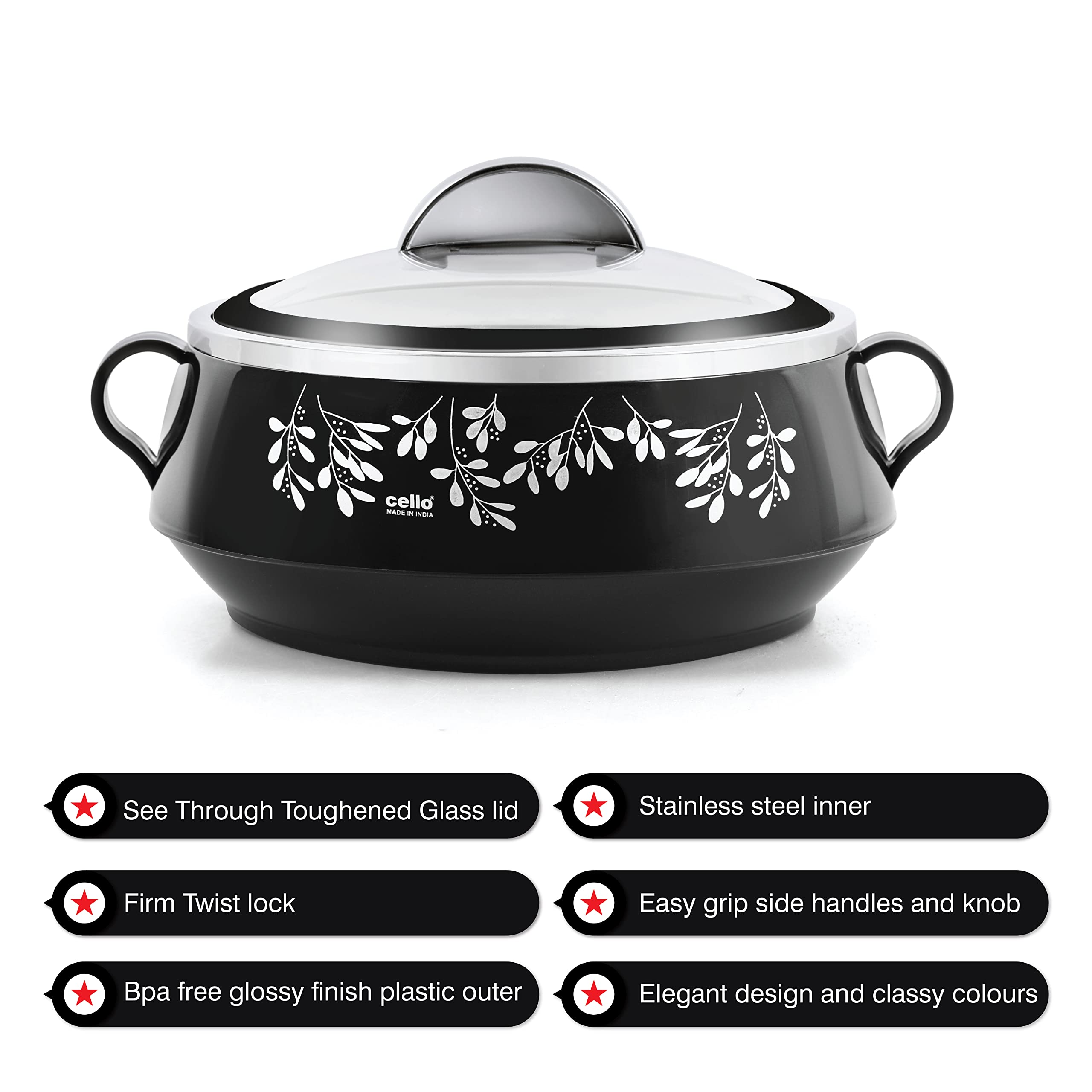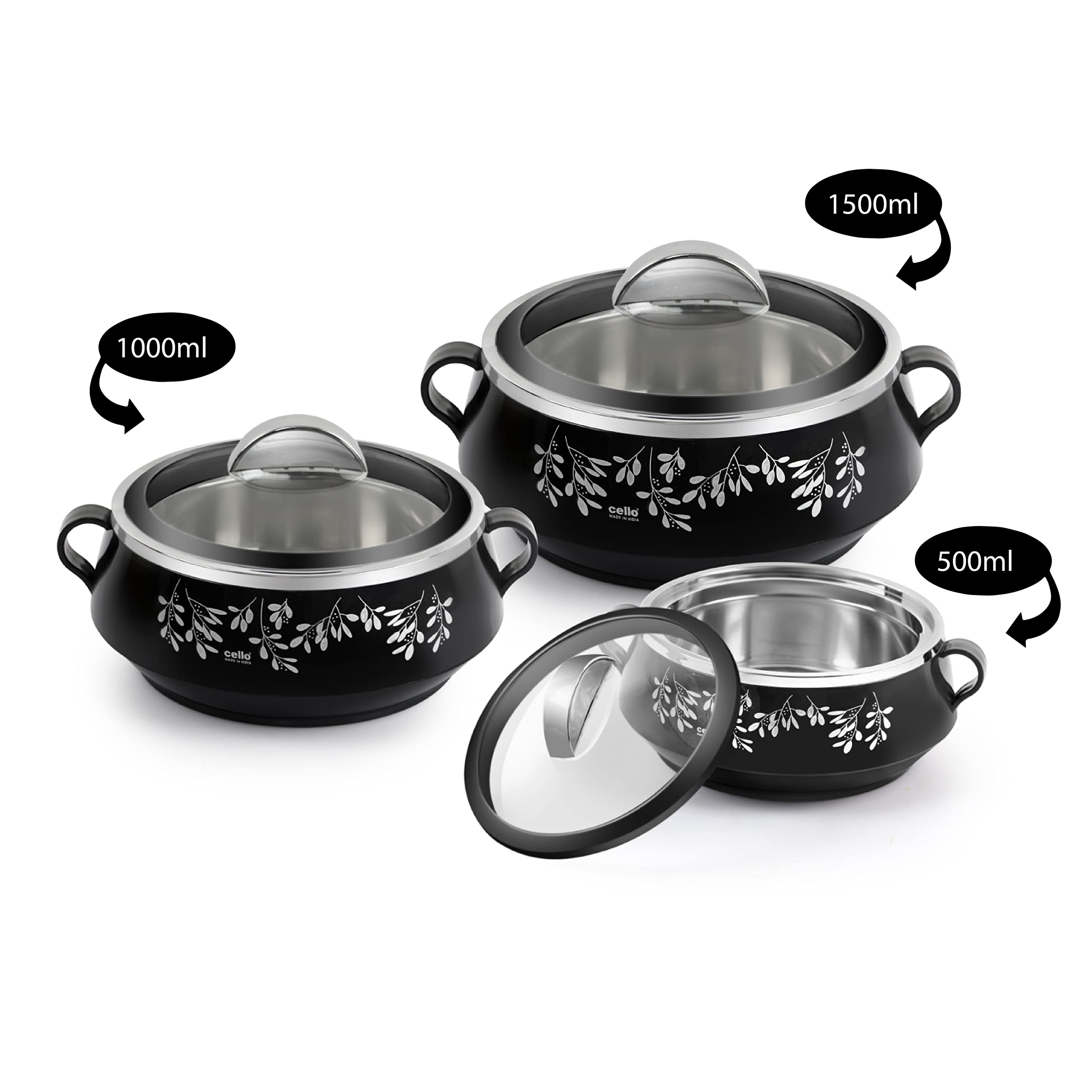 HomeKitchenTraditional CookwareHandisCello Glitter Casserole with Inner Steel | Insulated Stainless Steel Inner Body Casserole Set for Meal| chapati| Curry| roti, Set of 3, Black
