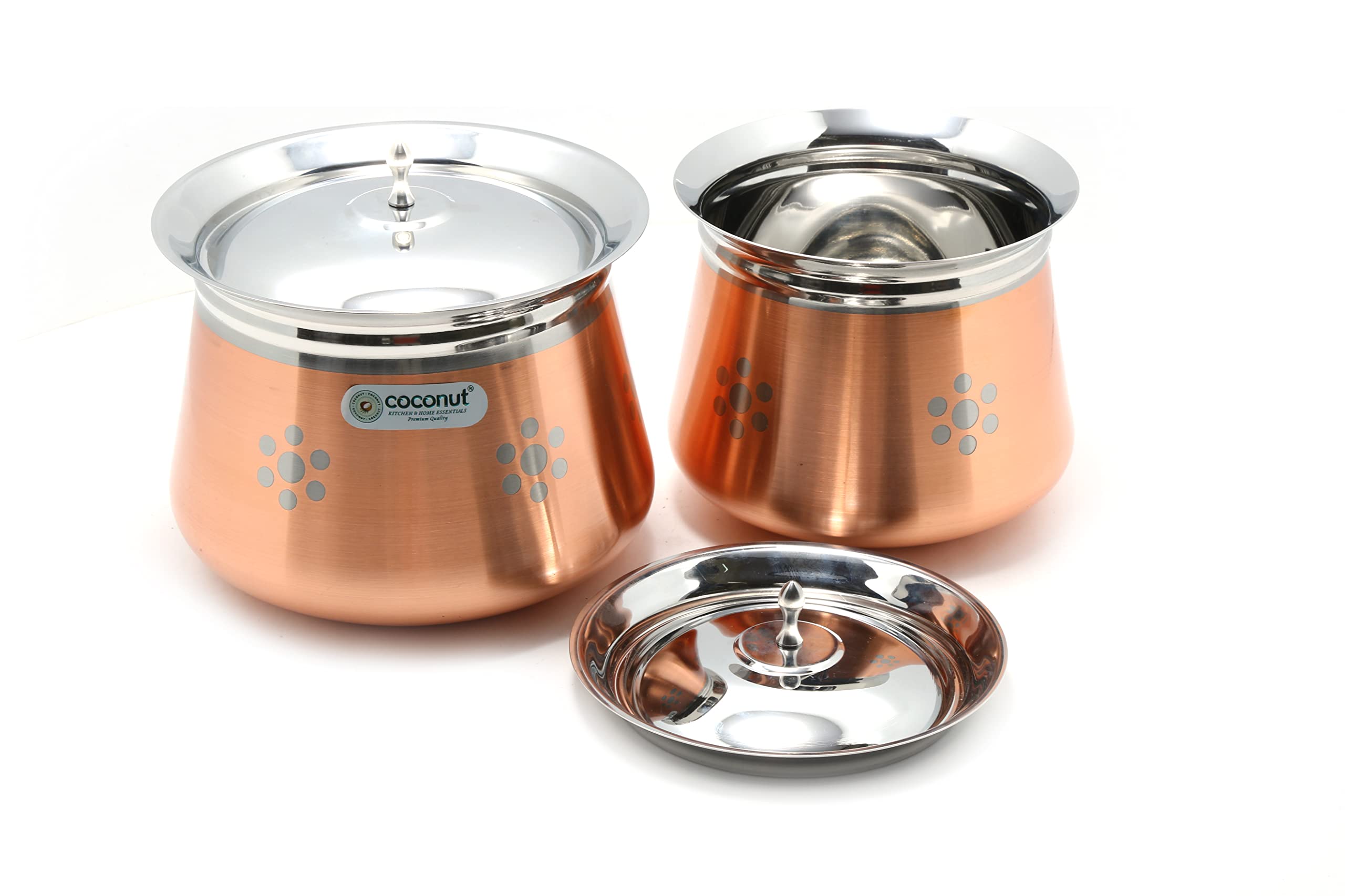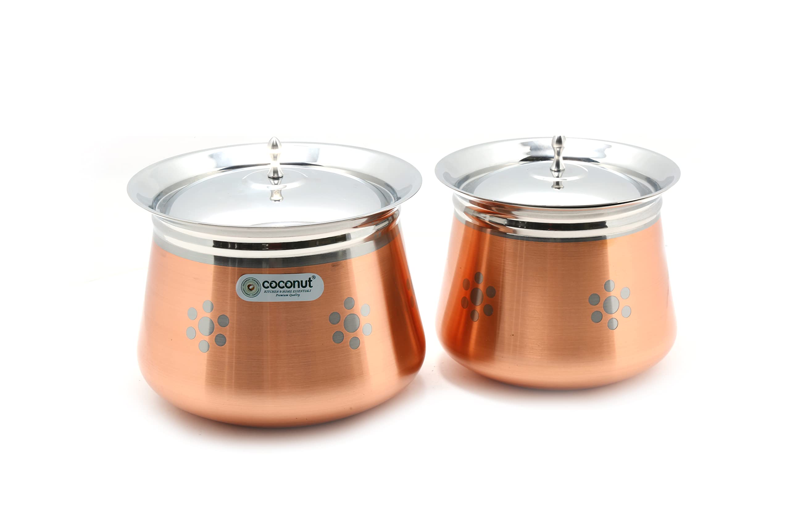 This Handi is made from High Quality stainless steel with heavy gauge for High Durability. Rust proof and Food Grade steel. Ideal for daily use on your Gas Stove. Compaq sizes makes it easy to store in kitchen cupboards. Easy to clean and maintain. This Handi is made from High Quality stainless steel with heavy guage for High Durability. Rust proof and Food Grade steel. Ideal for daily use on your Gas Stove. When not in use stack the smaller container inside bigger containers saving storage space. When not in use stack the smaller container inside bigger containers saving storage space. Compaq sizes makes it easy to store in kitchen cupboards. Easy to clean and maintain Product content: 2 Handis 1. Product Dimension - - Width - 14 Cm Length -14 CM Height - 12 Cm. Capacity -4 1400ML. 2. Product Dimension - - Width - 15 Cm Length -15 CM Height - 13 Cm. Capacity -2000ML.