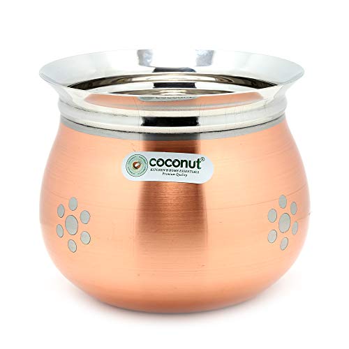 Coconut is a range of innovative and quality products for Home and Kitchen. This Iveo Handi is made from High Quality stainless steel with heavy guage for High Durability. Rust proof and Food Grade steel. Induction and Gas Friendly. Compaq size makes it easy to store in kitchen cupboards. Easy to clean and maintain. When not in use stack the smaller container inside bigger containers saving storage space. Ideal for daily use on your Gas Stove. Energy efficient. Heats evenly and cooks faster. Food will not stick to your pan. This Temple Handi comes with ( Without Handle & Lid).Product content: Coconut Stainless Steel Copper Daisy Handi 1 Unit. Product Dimension - Iveo Handi No. 3 - Width -14Cm Length - 14 Cm Height - 12 Cm .Capacity - 1350Ml.