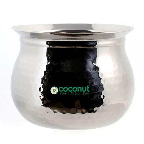 Coconut is a range of innovative and quality products for Home and Kitchen. This Iveo Handi is made from High Quality stainless steel with heavy guage for High Durability. Rust proof and Food Grade steel. Induction and Gas Friendly. Compaq size makes it easy to store in kitchen cupboards. Easy to clean and maintain. When not in use stack the smaller container inside bigger containers saving storage space. Ideal for daily use on your Gas Stove. Energy efficient. Heats evenly and cooks faster. Food will not stick to your pan. This Temple Handi comes with ( Without Handle & Lid).Product content: Coconut Stainless Steel Hammered Oreo Handi 1 Unit. Product Dimension - Iveo Handi No.5 - Width - 17 Cm Length - 17 Cm Height 14 CM. Capacity - 2550Ml .