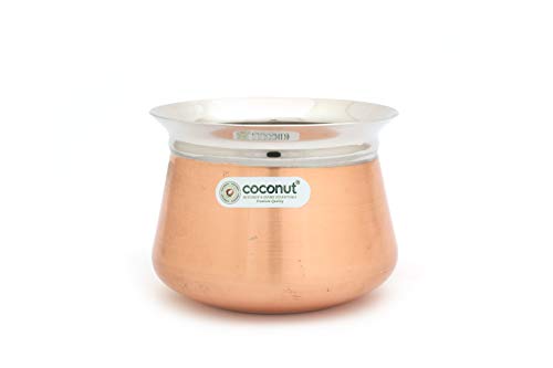 Coconut is range of Innovative and Quality products for Home and Kitchen. This Gala Copper Handi is ideally used to Serve Food like Curries Dals Biryani and other Indian Dining Experience for Dinnerware products. The Stainless steel surface preserves the taste and nutritional qualities of foods and it is a Food Grade product. It is ideally used for Home Restaurants Bars and catering services which comes with Inside Stainless steel & Outside Copper Based. Product content : Gala FC Copper Handi Cookware 1 Unit without Lid and Handle . Product Dimensions Width - 4.25 Inches & Height - 3.5 Inches Capacity 600ML