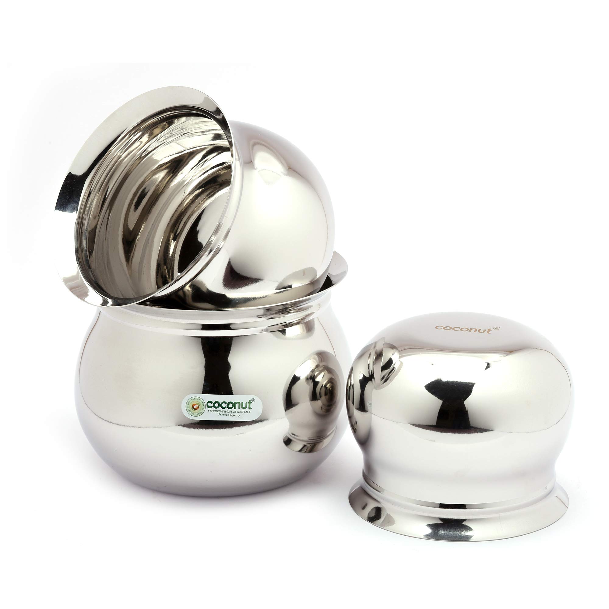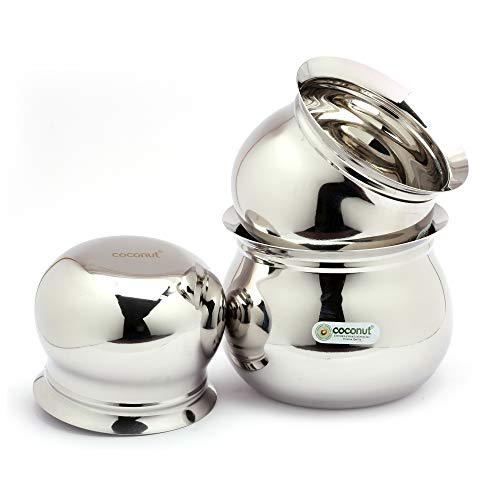 Coconut Stainless Steel Kanchi Handi/Cookware (Without Handle & Lid) - Set of 3 Unit - Capacity -550ML, 800 ML & 1000ML
