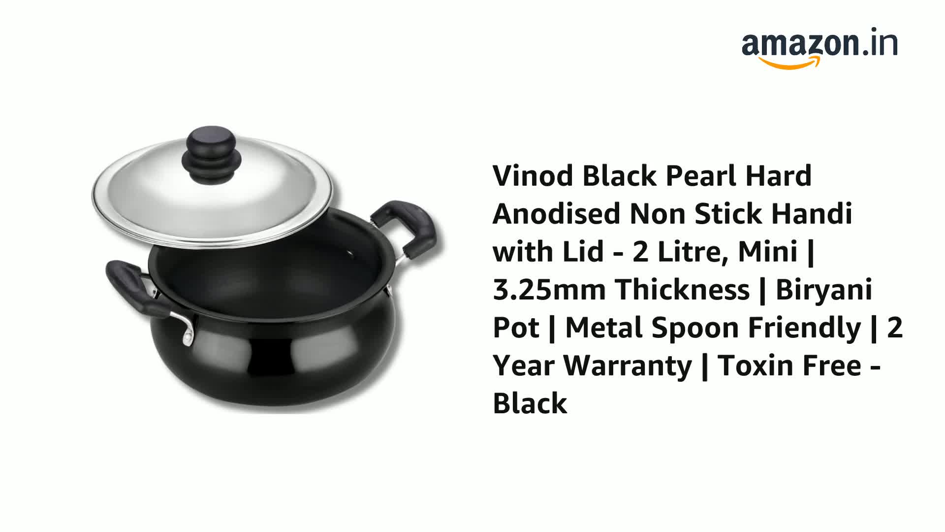 1-Piece Hard Anodised 1-Piece Mini Handi (2 Litres) and 1-Piece Lid