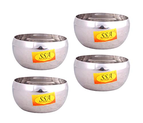 • Highly Durable Designer Stainless Steel Handi Bowl (4 piece 300 Ml Each Silver)