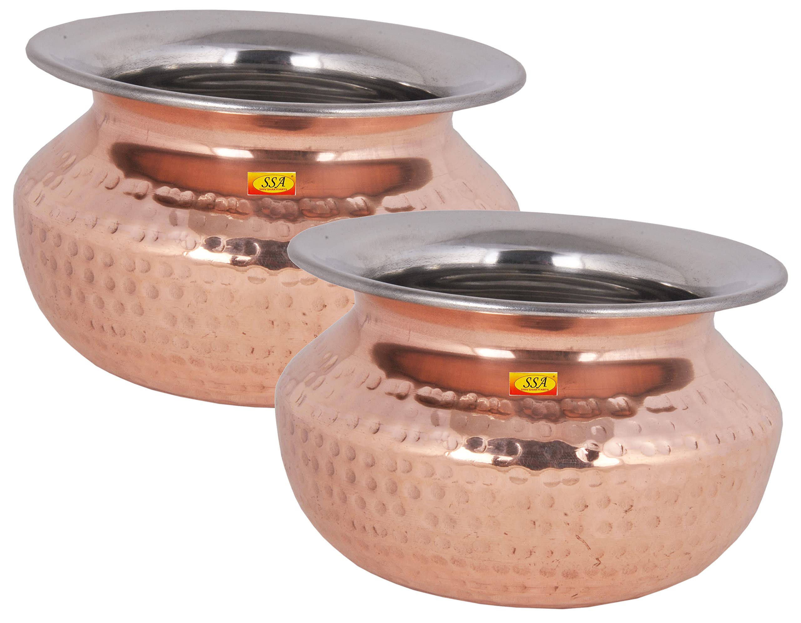 Shiv Shakti Arts Steel Copper Handi - Punjabi & Rajasthani Design - for Serving Food (No.3-1000 ML).Set of 2 Piece