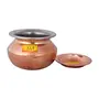 • Steel Copper Handi With Lid - Punjabi & Rajasthani Design - For Serving Food(No.3 - 800 ML)