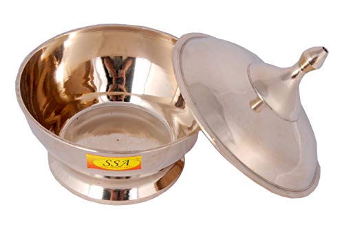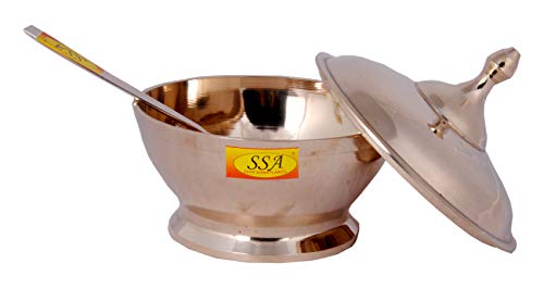 • Pure Bronze Kansa Serving Donga | Bowl | Handi | Casserole With Serving Spoon For Serving Food Tableware/Serveware (Gold 700 ML)