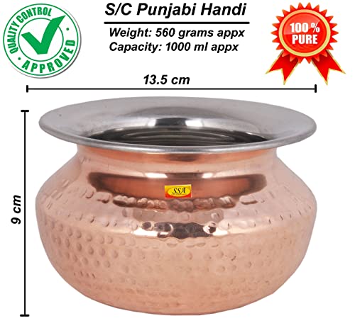 Shiv Shakti Arts® Steel Copper Handi - Punjabi & Rajasthani Design - for Serving Food (No.3-1000 ML).Set Of 1 Piece