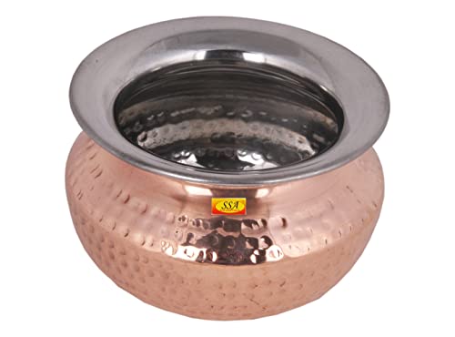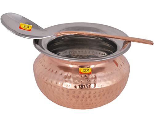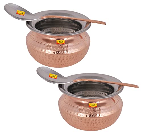 Shiv Shakti Arts® Steel Copper Handi with Serving Spoon - Punjabi & Rajasthani Design - for Serving Food.(No.3-1000 ML) Set Of 2 Piece.