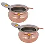 • Steel Copper Handi With Serving Spoon - Punjabi & Rajasthani Design - For Serving Food(No.3 - 1000ML) Set Of 2 Piece.