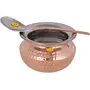 • Highly Durable Steel Copper Punjabi & Rajasthani Serving Handi With Serving Spoon = Dimension : 9 x 13.5 cm (Height x Width) Capacity - 1000 ML Weight - 560 Gram Approx = Diameter Of Top - 13.5 cm.|Spoon Weight- 57 gm Length-21.5 cm.
