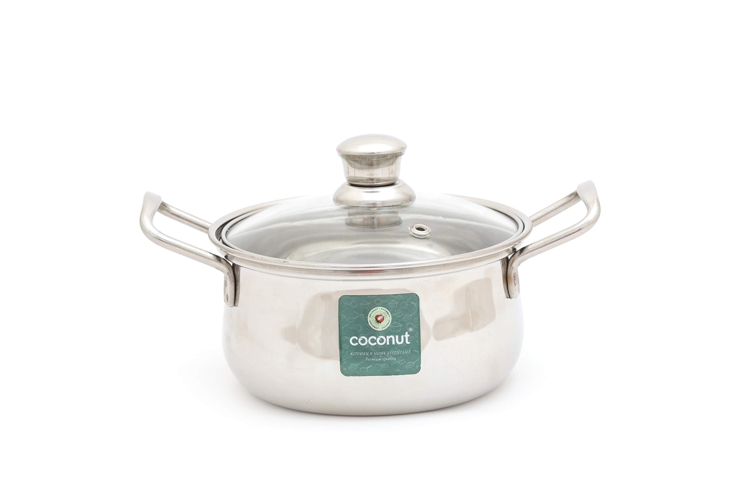 Coconut is range of innovative and Quality products for Home and Kitchen. This Mysore Royal Handi is made from Premium Quality Stainless Steel. It is long lasting and durable. It is perfect collection for a modern kitchen and comes in a silver color. It has Heat Resistant Stainless Steel Knob. It is compactible for Induction & Gas Stove. This Handi has a Strong & Sturdy Handles. This Mysore Royal Handi is an essential product for modern kitchen cookware collections which will give your Dining table very attractive look and elegant It is ideally used for serveware for all kind of dishes. Product Content: Coconut Stainless Steel Mysore Royal Handi Glass Lid with Handle 1 Unit Product Dimension Width -19Cm Height 10Cm Capacity -2000ML