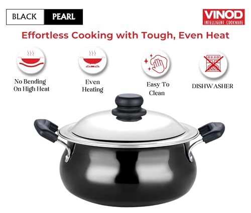 Vinod Black Pearl Hard Anodised Non Stick Handi with Lid - 6.5 Litre, Large | 3.25mm Thickness | Biryani Pot | Gas Stove Compatible | 2 Year Warranty | Toxin Free - Black