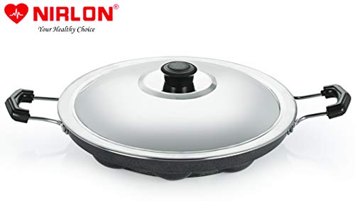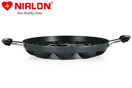 Nirlon Non-Stick 12 Cavity Appam Patra Side Handle with Steel lid