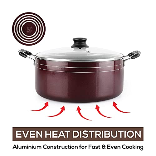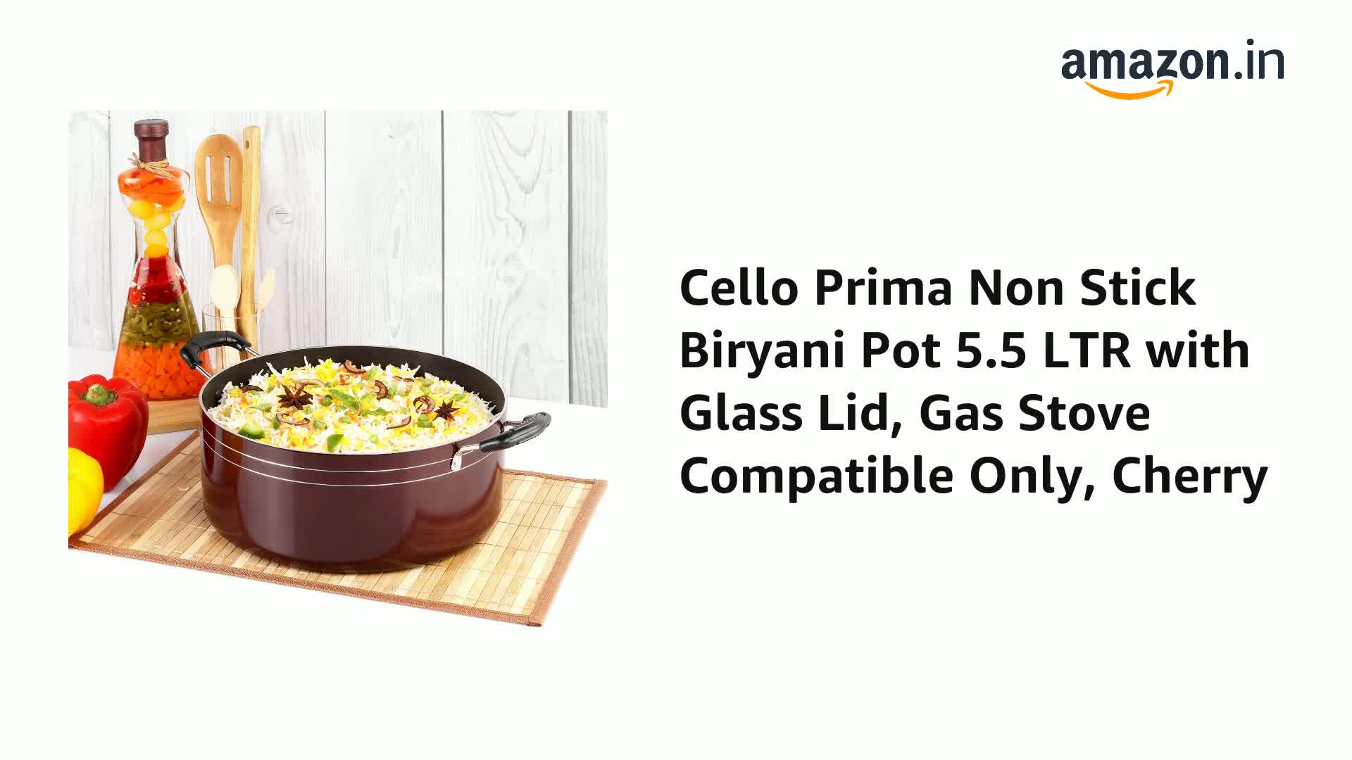 Cello Prima Non Stick Biryani Pot 5.5 ltr with Glass Lid can be your ideal cookware to cook delicious and flavorsome cuisines. Now experience taste high performance and health all in one place with Cello Non Stick Biryani Pot. Specifically designed for preparing Indias most loved delicacy it makes sure all the ingredients are cooked to perfection. Cooking with this pot facilitates the even distribution of temperature throughout as the spiral bottom promotes faster cooking resulting in tastier biriyanis. Delight your family and friends to some lip smacking biriyani with Cello. Cello has been with you serving you accompanying you for generations in each and every space of your home from living room to dinning room bedroom to bathroom. You have made us a part of your family. We want to strengthen this relationship by serving you more. Our products will help you spend great times with your loved ones by making household work an easier and enjoyable experience for you. We as a Cello Group is striving towards introducing a word class lifestyle to every individual for an enduring relationship of trust and commitment.