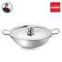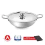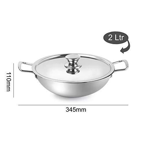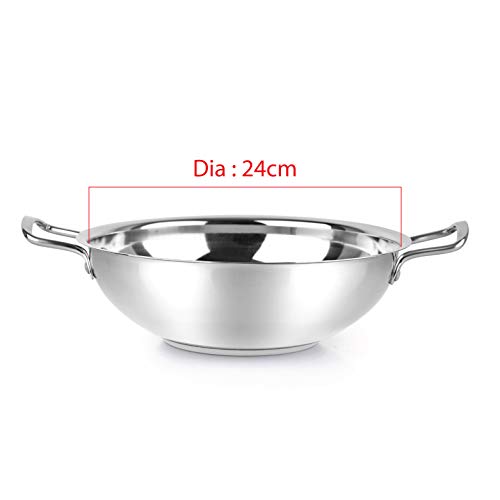 Cello Steelox Premia Stainless Kadhai with SS Lid 2.0Ltr/24cm, Silver, Medium | Stainless Steel Cookware for Kitchen | Indian Cuisine Cooking Equipment