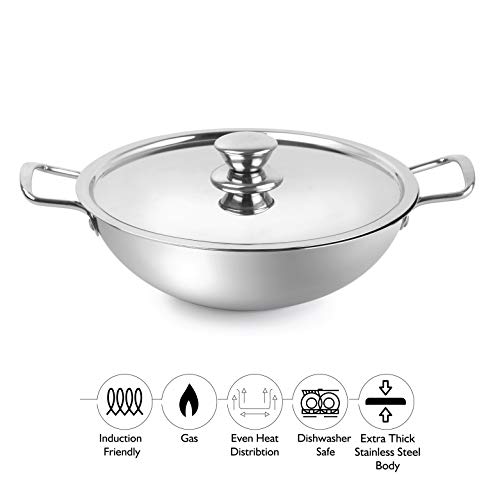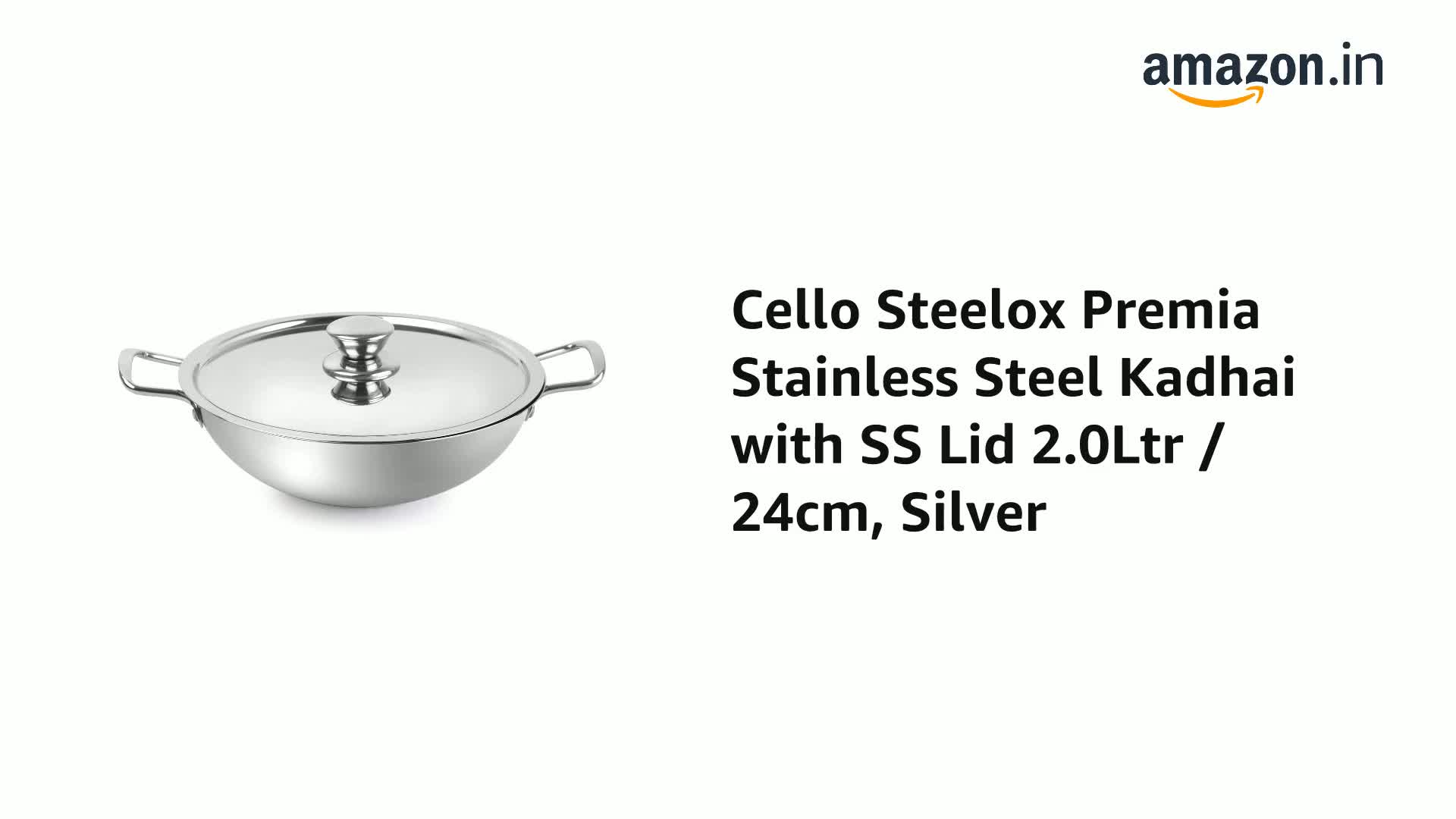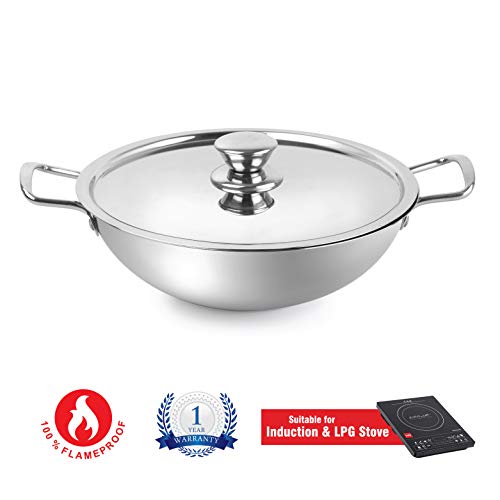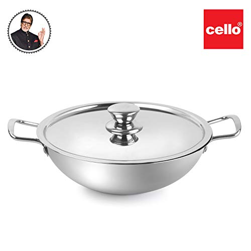 Cello Steelox Stainless Steel Kadai with stainless steel Lid is a reliable cookware set that brings you hassle-free cooking experience. Made from 100% food grade stainless steel it is strong and durable. The thick steel ensure even heat distribution ensuring the food id cooked at an optimum temperature. This Kadai has an induction and gas stove compatible bottom for convenience and ease of use. It is easy to clean very stylish and will become an eye-catching piece of cookware to have in your kitchen.