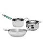Coconut has complete range of Home and Kitchen essential products for daily use. This Cookware Set of 3 is made from Premium Quality Stainless Steel material. This cookware set is induction compatible. This is ideally used for cook & serve multipurpose. This combo Gift is ideally used for gifting purpose for marriage House warming ceremony and other occasions etc. This Cookware combo set comes with Stylish handles and Designer finish which gives elegance look to your kitchen and makes cooking more enjoyable. Product content Stainless Steel Cookware Set - Tope/Patila kadhai Sauce pan without Lid set of 3 units. ( Dimension Kadai without lid Width 21Cm & Height 9Cm Sauce Pan without lid Width 14.5 Cm & Height - 9 Cm Pot without lid Width 14.5 Cm & Height 9 Cm)