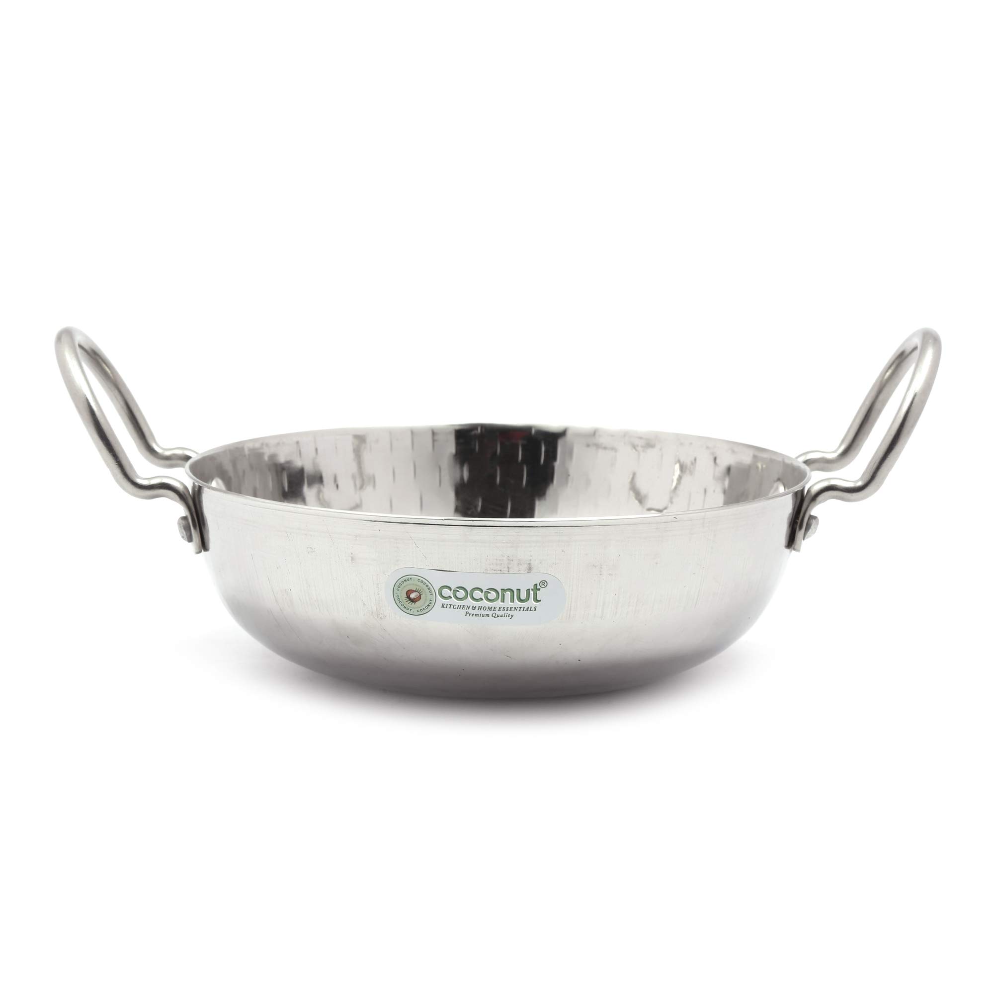 Coconut offers a range of quality products from the house of BM agencies. We mainly offer a wide range of high-quality kitchen products that are well checked before being launched into the market. Each product goes through a high level of quality check. We ensure that our range of products just don't look good but serves it purpose at its best. Package Contents: Coconut Hammered Kadai - 1 Unit - Capacity -1500ML Prdouct Thickness - 3MMProduct Dimension : Lenth - 20Cm Width-20Cm Hight -7.5Cm.