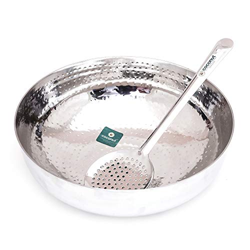Coconut Stainless Steel Hammered Taasla/Kadhai (Without Handle & Lid) Heavy 18 Guage with Zara - Diamater - 9.5 Inches