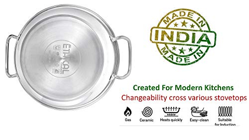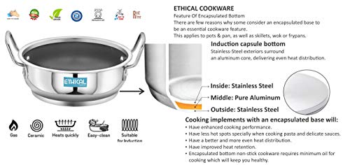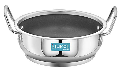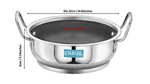 ETHICAL DIVINEART Stainless Steel Encapsulated Bottom Non Stick Kadhai 2.30 L / 22 cm