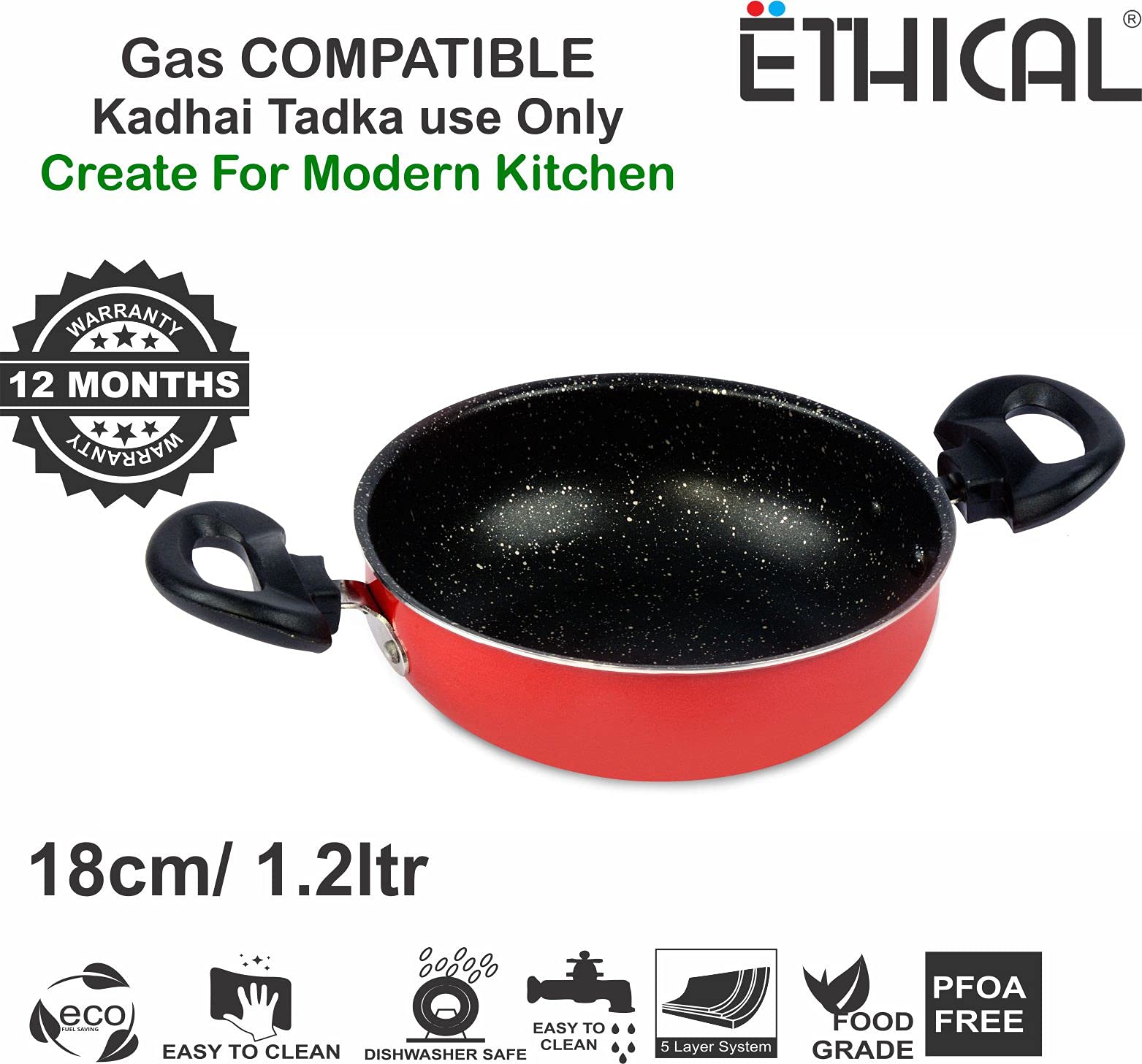 Ethical MASTREO Series Tadka Kadhai 18cm Non-Stick Gas Compatible Without Glass Lid