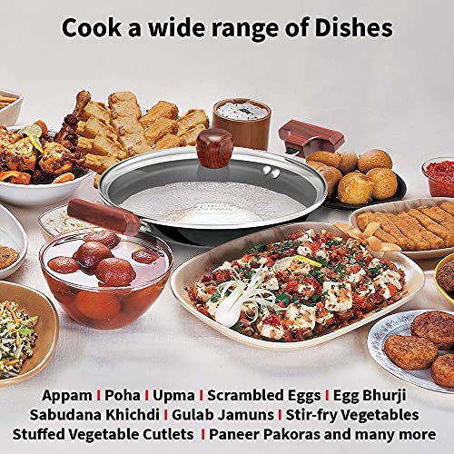 Futura Nonstick Deep-Fry Pans are ideal for sautéing and stir-frying foods using minimal quantities of oil. They can also be used for deep-frying and for cooking gravies curries and sauces. The Pans are offered with elegant comfortable rosewood handles fixed on sturdy stainless steel brackets which are permanently riveted to the pans. The pan is also offered with a tough heat-resistant glass lid with a strong stainless steel rim. The pans are available with a round bottom for greater convenience during stir-frying and ideal for use on domestic gas stoves or radiant electric cooktops. Perfect for Appam (Rice and Coconut Milk Pancakes) Firni (Milk and Ground Rice Pudding) Bengal Fish Curry Stir-Fried Bean Sprouts and Vegetables Samosa (Savoury Stuffed Pastries Egg Curry and Kadai Masala Chicken (Spicy Stir-Fried Chicken).