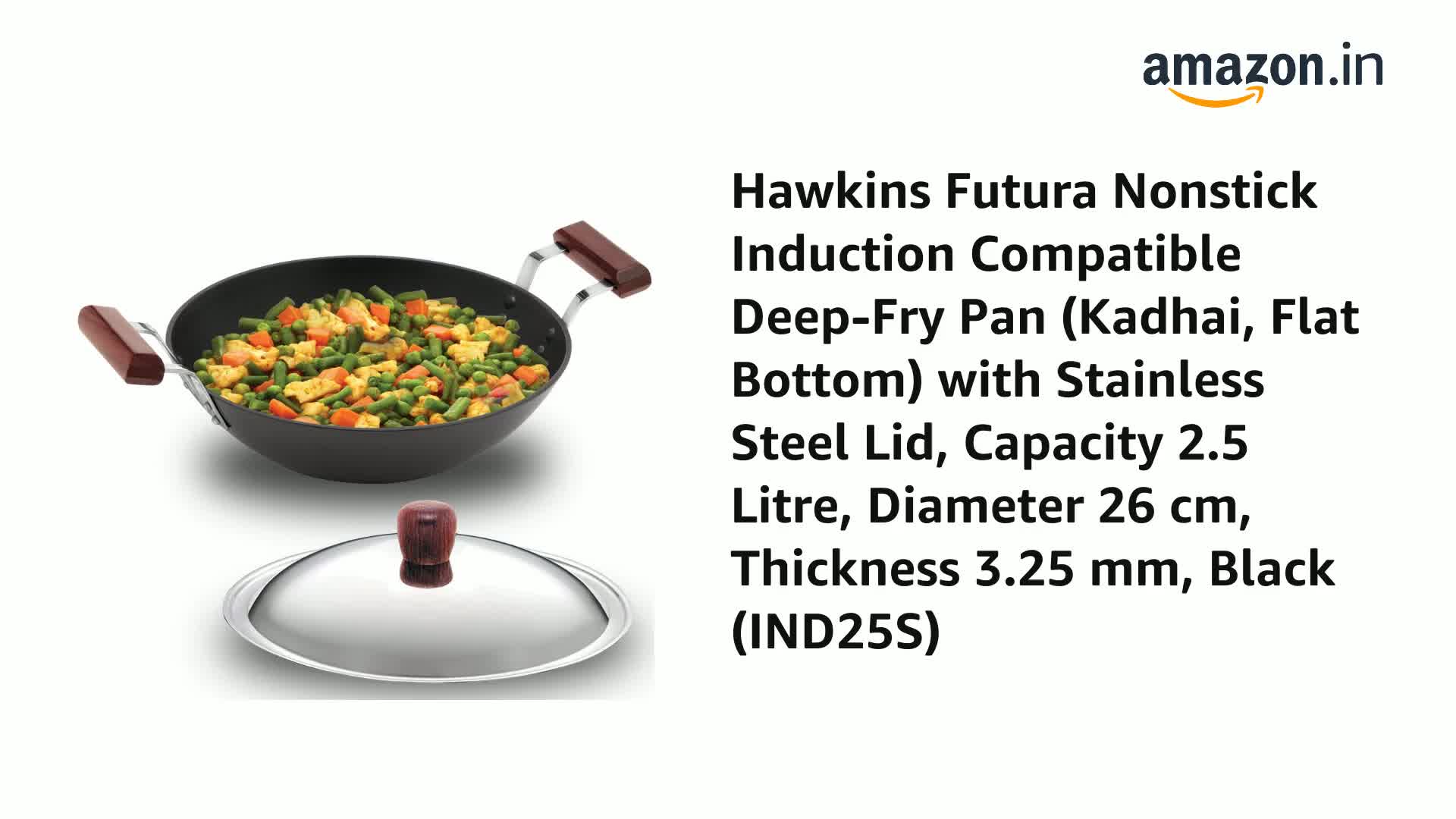 Hawkins Futura 2.5 Litre Deep Fry Pan, Non Stick Kadai with Stainless Steel Lid, Flat Bottom Induction Kadhai, Black (IND25S)