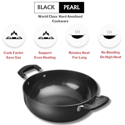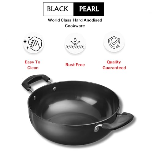 Vinod Black Pearl Plus Hard Anodised Deep Kadhai with Lid - 3.1 Litre, 24 cm | 3.25mm Thick | Natural Stick Free Kadai | Metal Spoon Friendly | 2 Year Warranty | Induction Base