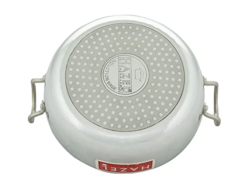 HAZEL Aluminium Induction Base Kadai With Handle 4800 ML Silver. This special kadhai will give you a perfect dining experience. It will add gloom and elegance to you dining table. Long lasting. Convenient to use for multiple purposes.Easy cooking and cleaning. Extremely sturdy and durable. Make your kitchen look perfect with these intricate design and traditional pattern classy kitchen accessoriesAluminum kadhai Ideal for samosas vegetables for making sweets and much more Deep frying foods. This cookware utensil is of classy finish and gives an elegant look to kitchen decor. This product is an ideal cookware for any kitchen. Easy to clean and wash they have very exotic color. Used for preparing and cooking food or stylishly serving food. Comfortable handle. This product is used in various restaurants home catering etc for making various dishes. Aluminium kadai with handle have been made of fine quality material makes this set long-lasting. The superb design of the cookware makes it a great addition to your antique cookware collection. Can be used on both cook top and induction . Dimension :- 33.7 x 27.8 x 16.3 cm (LxBxH) Diameter :- 26.8 cm Weight :- 1260 gm Capacity :- 4800 ML. 3 Months Manufacturer Warranty