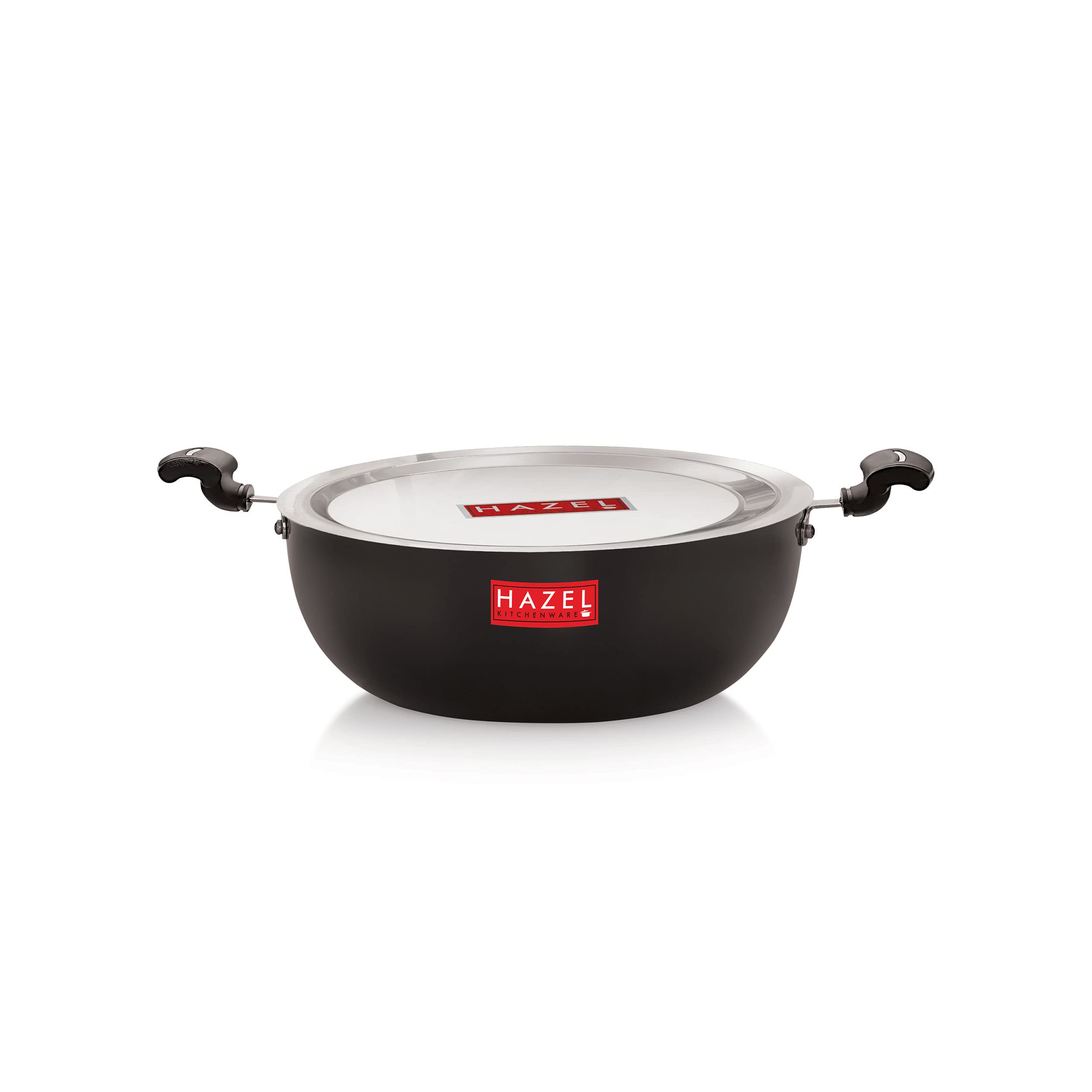 HomeKitchenTraditional CookwareKadhaiHAZEL Hard Anodised Kadai Induction | Induction Cookware Kadhai with Lid | Aluminium Kadai with Handle | Kadhai with Lid Combo, 1700 ML