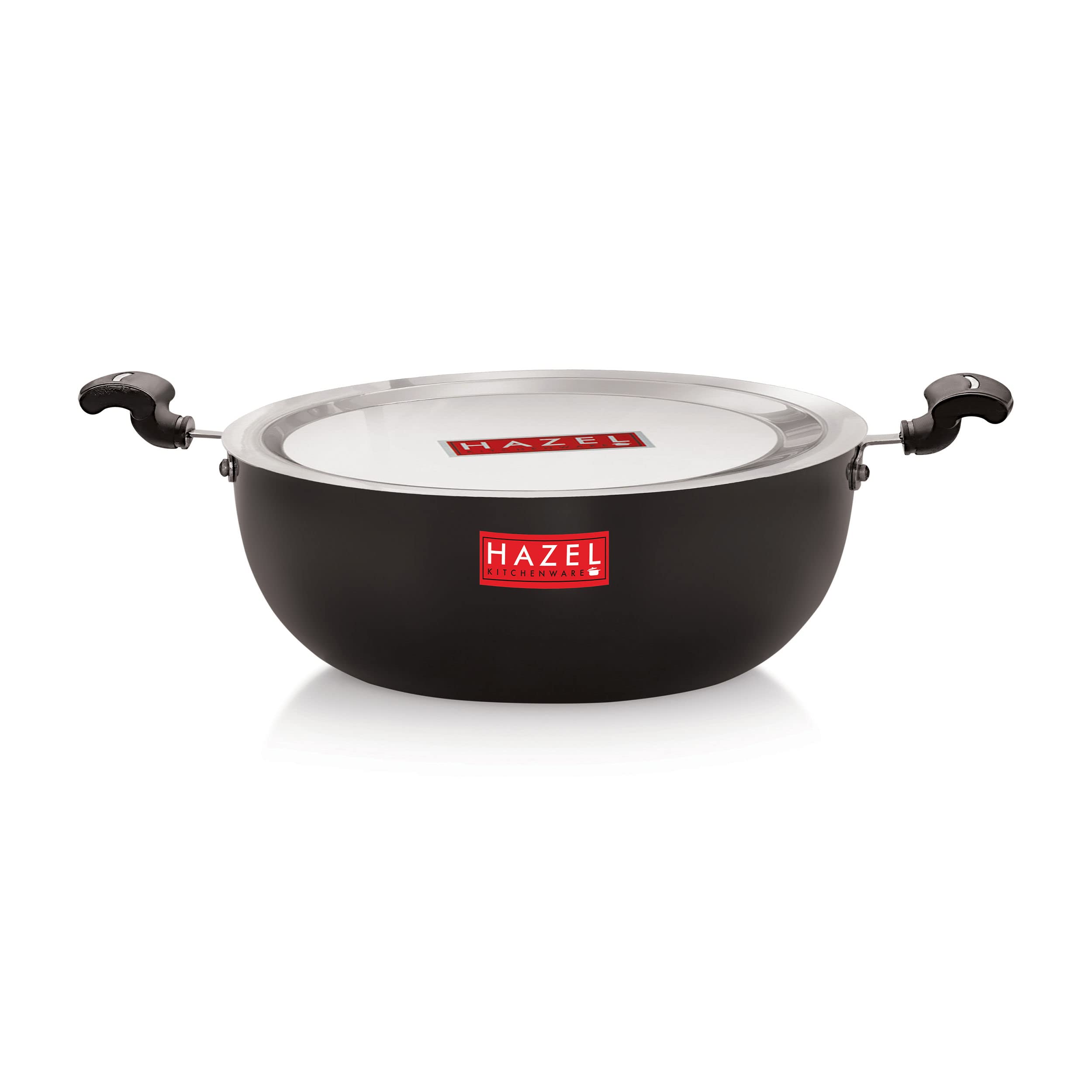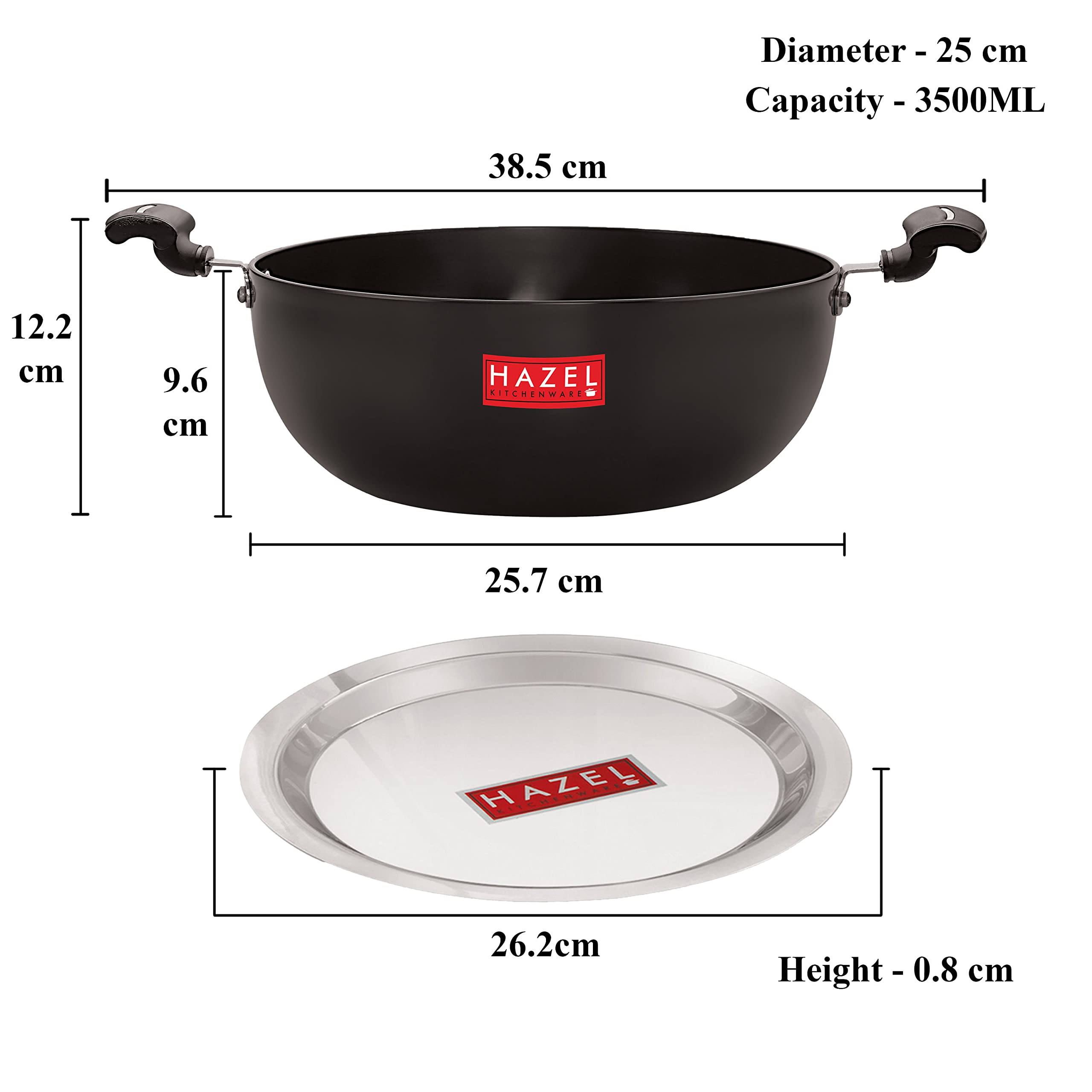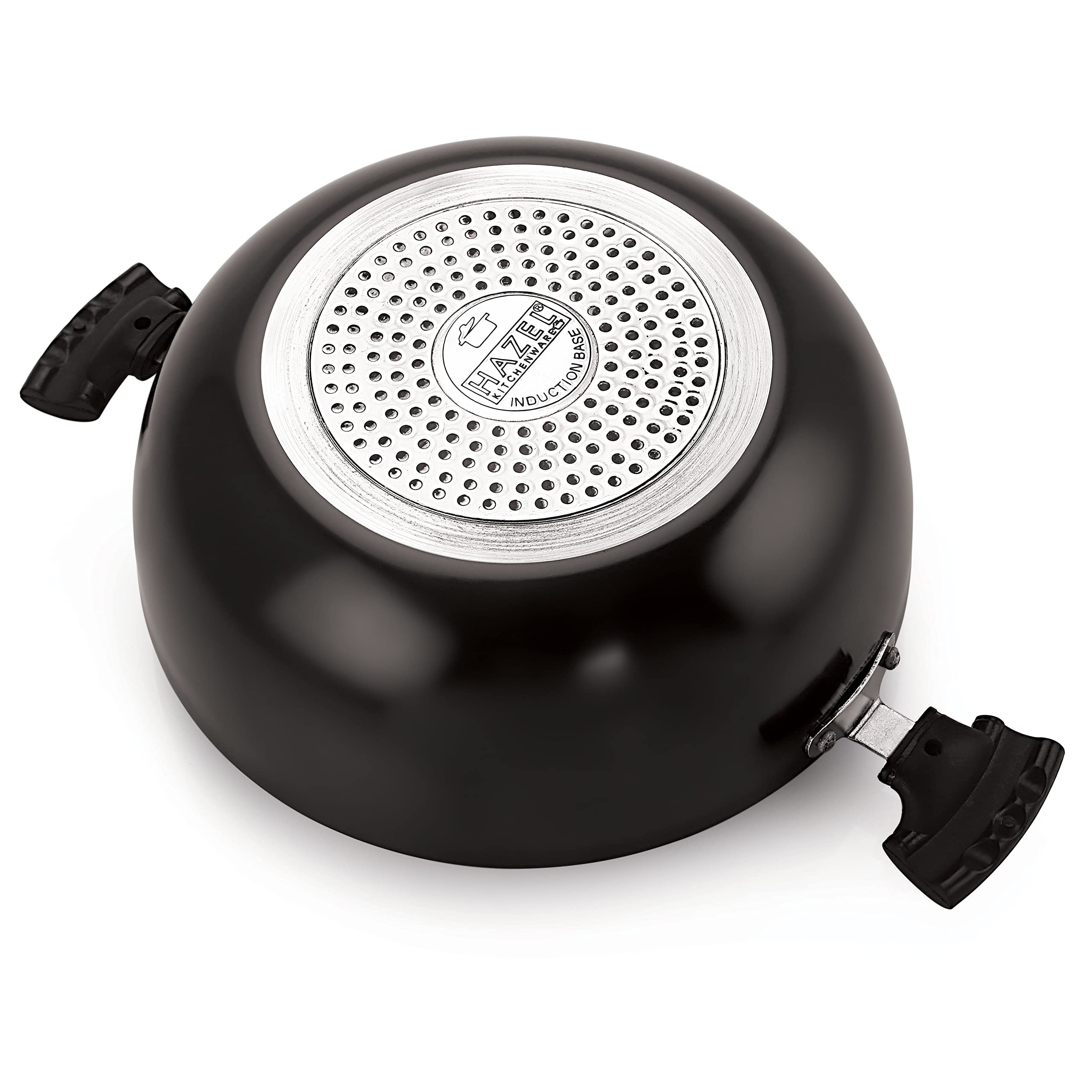 HomeKitchenTraditional CookwareKadhaiHAZEL Hard Anodised Kadai Induction | Induction Cookware Kadhai with Lid | Aluminium Kadai with Handle | Kadhai with Lid Combo, 3500 ML