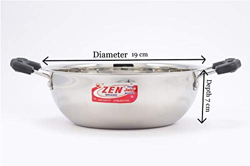 JAIN Induction Flat Stainless Steel Kadhai Thick Guage (Dia 19cm, 1250ML)